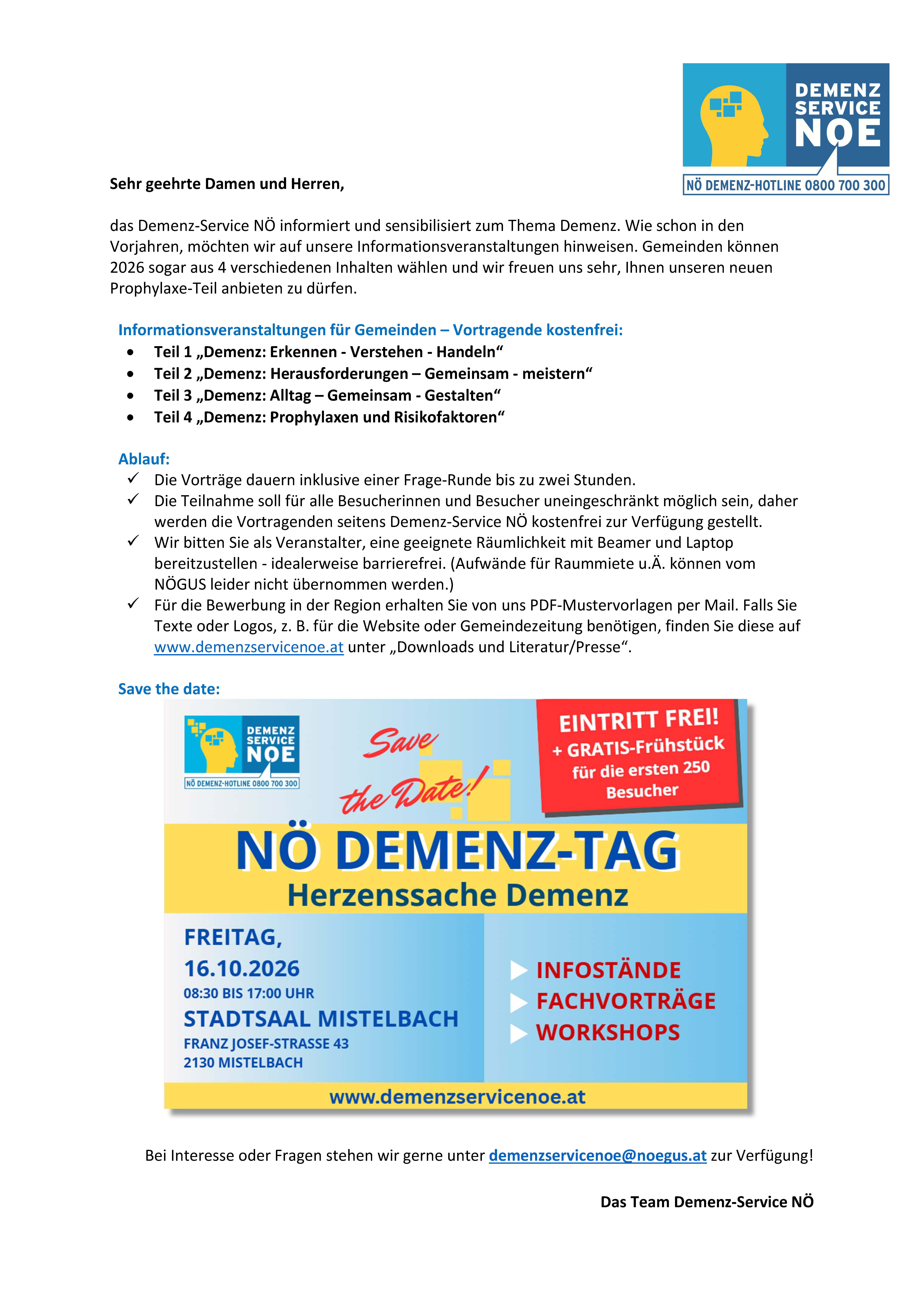 Freitag, 16.10.2026, 8:30 bis 17:00 Uhr im Stadtsaal Mistelbach