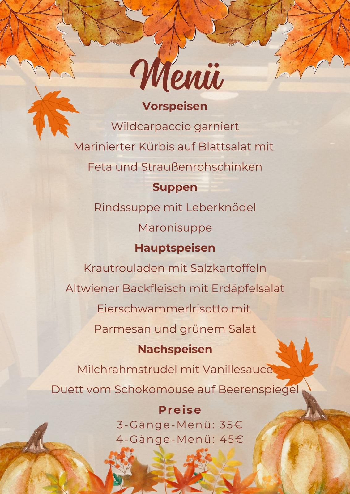 Ein Empfang mit staubigem Jungwein und Maroni und anschließend eine mehrgängige Menüabfolge passend zum Herbst.