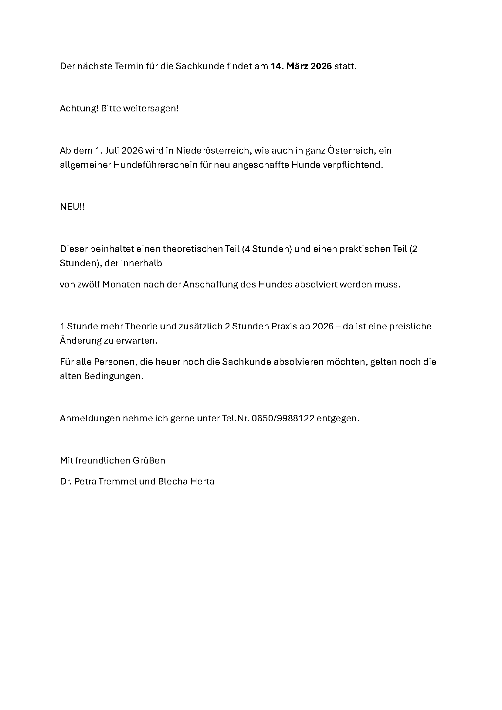 HUNDEFÜHRERSCHEIN FÜR NEU ANGESCHAFFTE HUNDE AB 1. JULI 2026 VERPFLICHTEND.