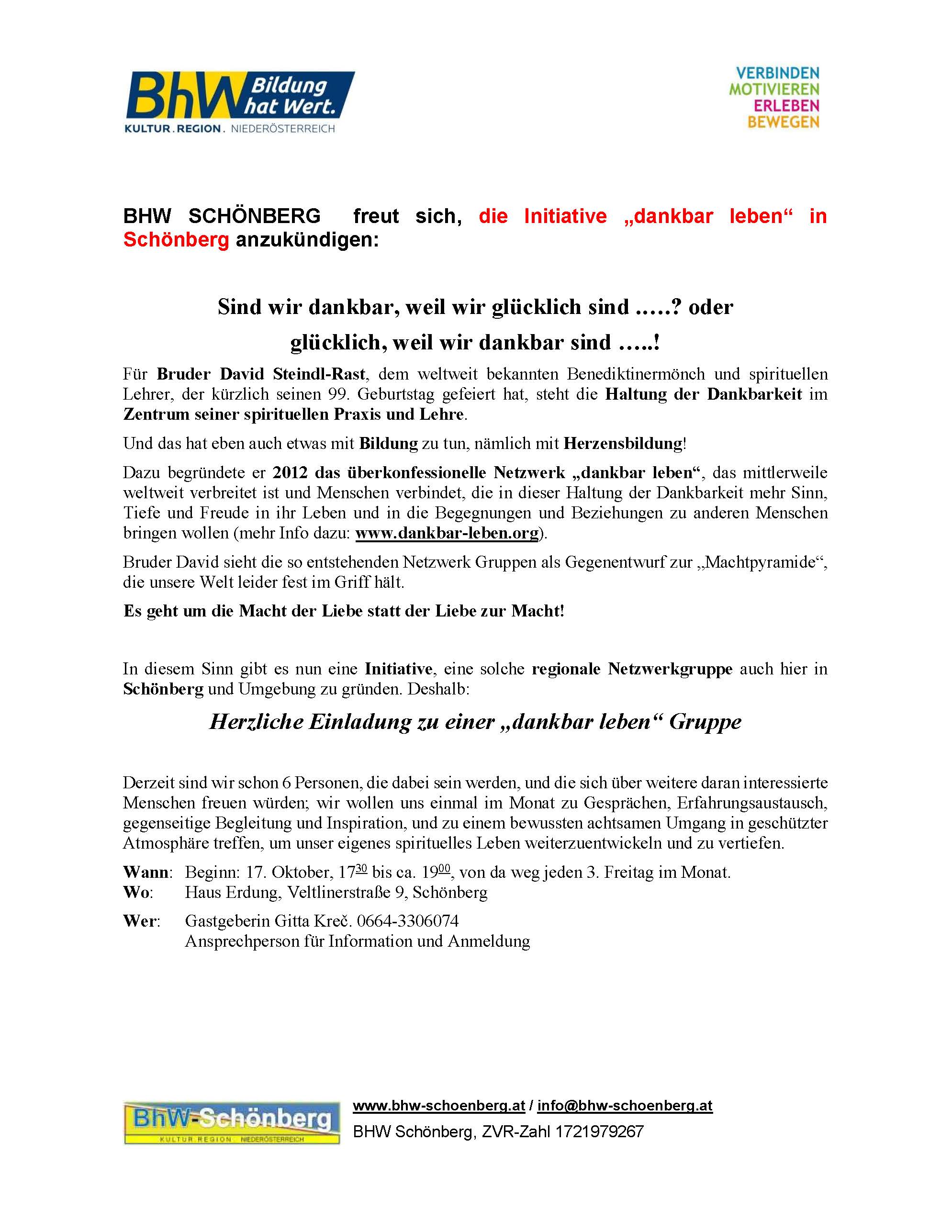 Wann: Beginn: 17. Oktober, 17.30 bis ca. 19.00, von da weg jeden 3. Freitag im Monat.