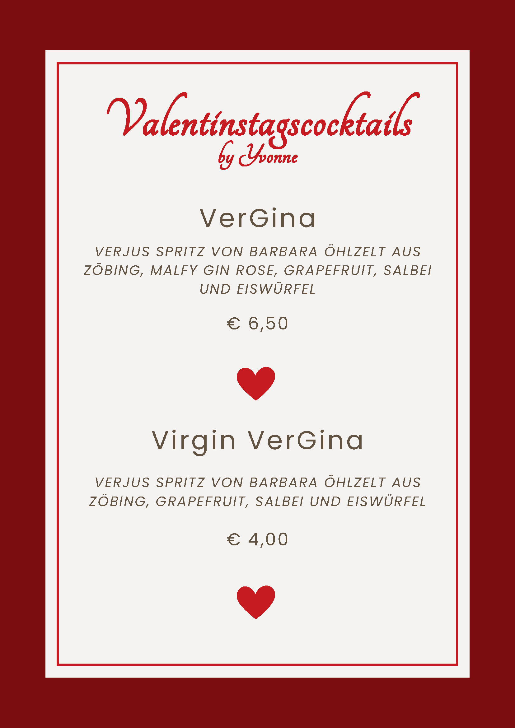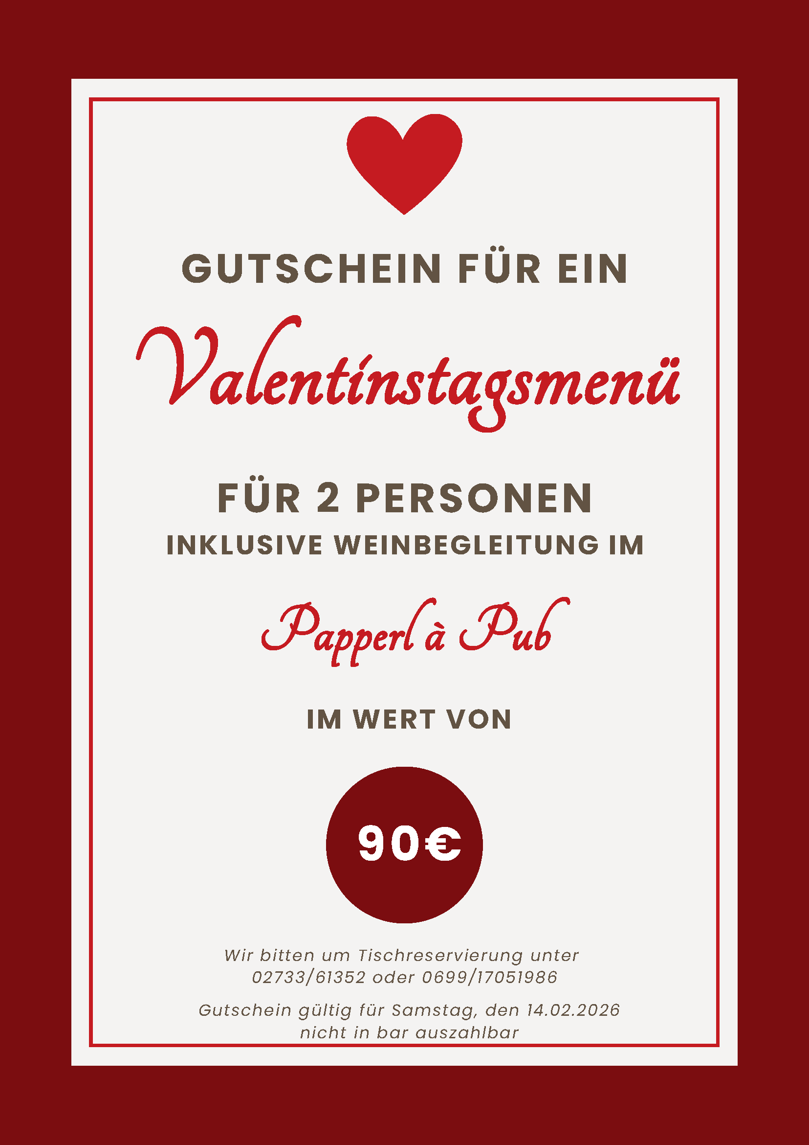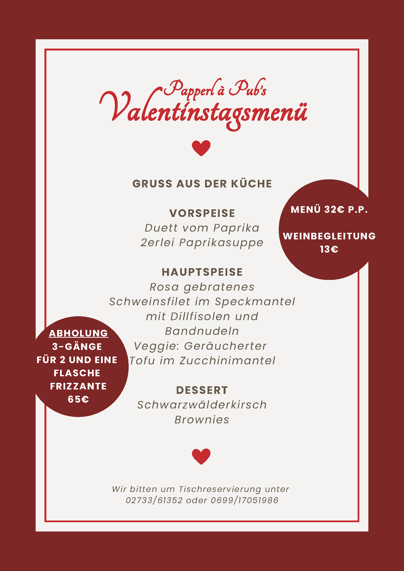 Valentinstagsmenü im Papperl à Pub