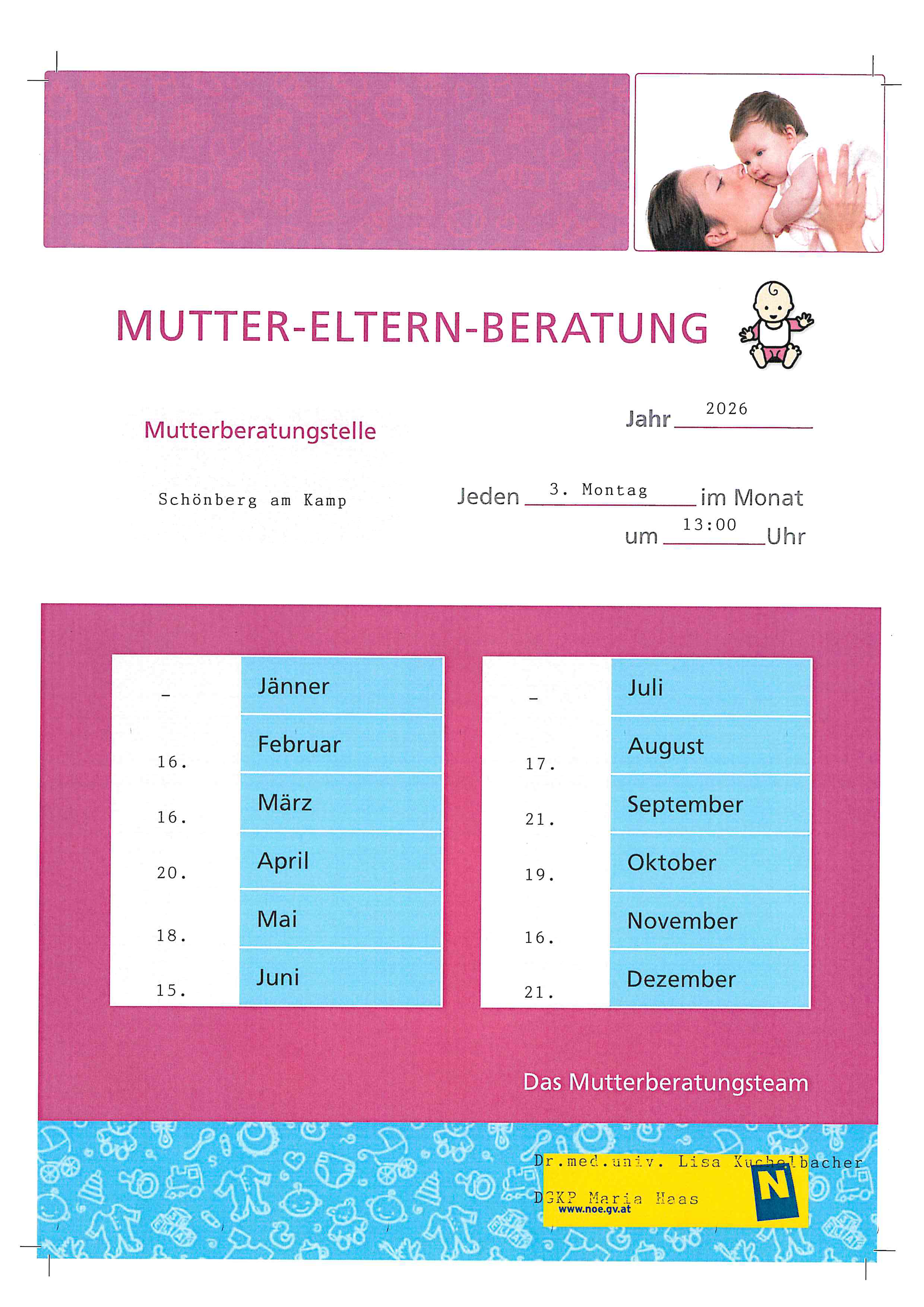 Folgend finden Sie die Mutter-Eltern-Beratungstermine 2026: